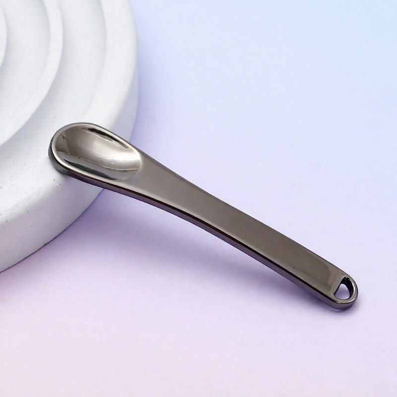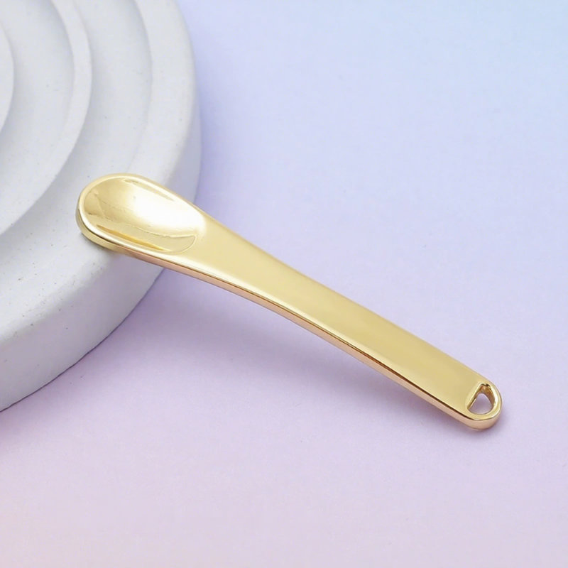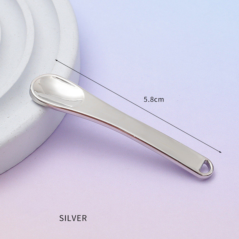 luxe metalen spatel, cosmetische crème lepel licht gebogen – crème zalf lepels verkrijgbaar in de kleuren zilver, goud, koper, of grijs. hygiëne lepel crème zalf. Spatels te gebruiken voor crèmes, scrubs. maskers, zalven e.d. Een spatel is onmisbaar hygiënisch gereedschap voor o.a. cosmetica. Neem op een hygiënische wijze crème, zalf dagcrème, gezichtscrème en andere lotions, zalfjes uit de pot of tube. Breng daarna met de spatel aan op de huid. Deze handige beauty tool is herbruikbaar, gemaakt van metaal en +- 5.8 cm lang.