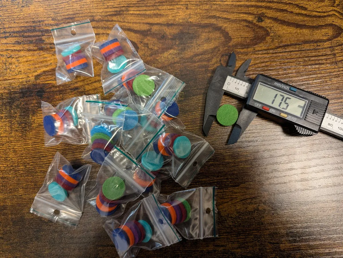 - Pad – viltjes maat: +- 15 mm. voor 22 mm. clicks buttons