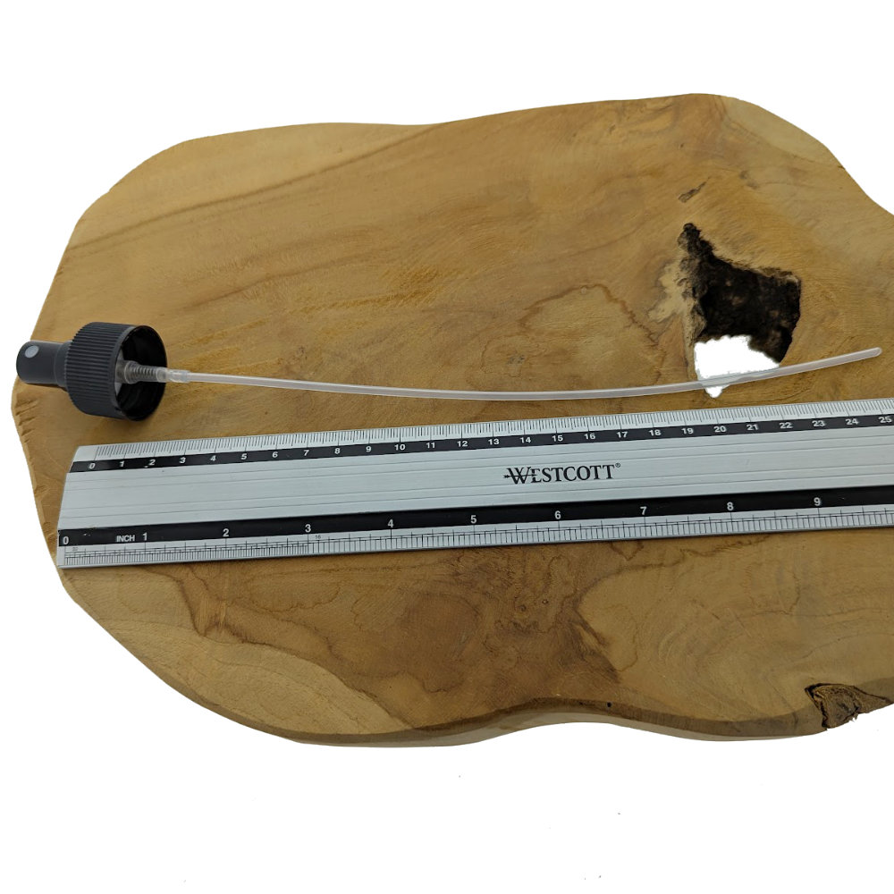 Handige verstuiver spray dop zwart geschikt voor fles met een schroefhals van 28 mm. spray verstuiver schroefdop DIN28 – 28/410. Geschikt voor alle glazen of kunststof pet flessen met een fleshals van 28 mm, het rietje / buisje aan de verstuiver dop heeft een lengte van +- 22 cm. en is zelf op maat te knippen voor flessen van 100 ml t/m 1 liter.
